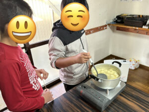 自分たちで時間をかけて一生懸命作ったものは美味しいのか、最初は抵抗していても一口食べるとおかわりの声を聴かれることが多いです(^^)